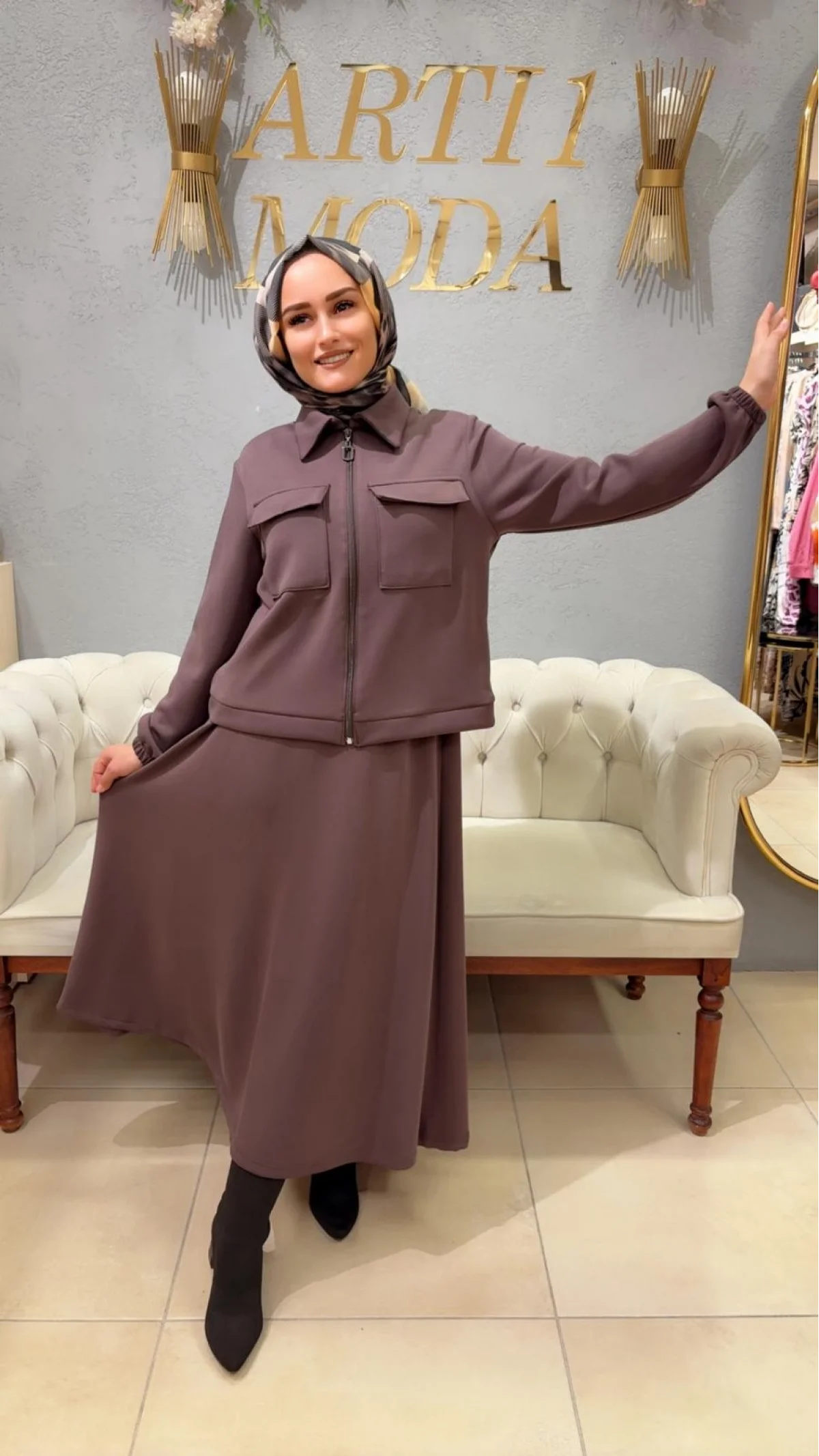 Otto Süet Etekli Ceket Takım Kahve Vizon