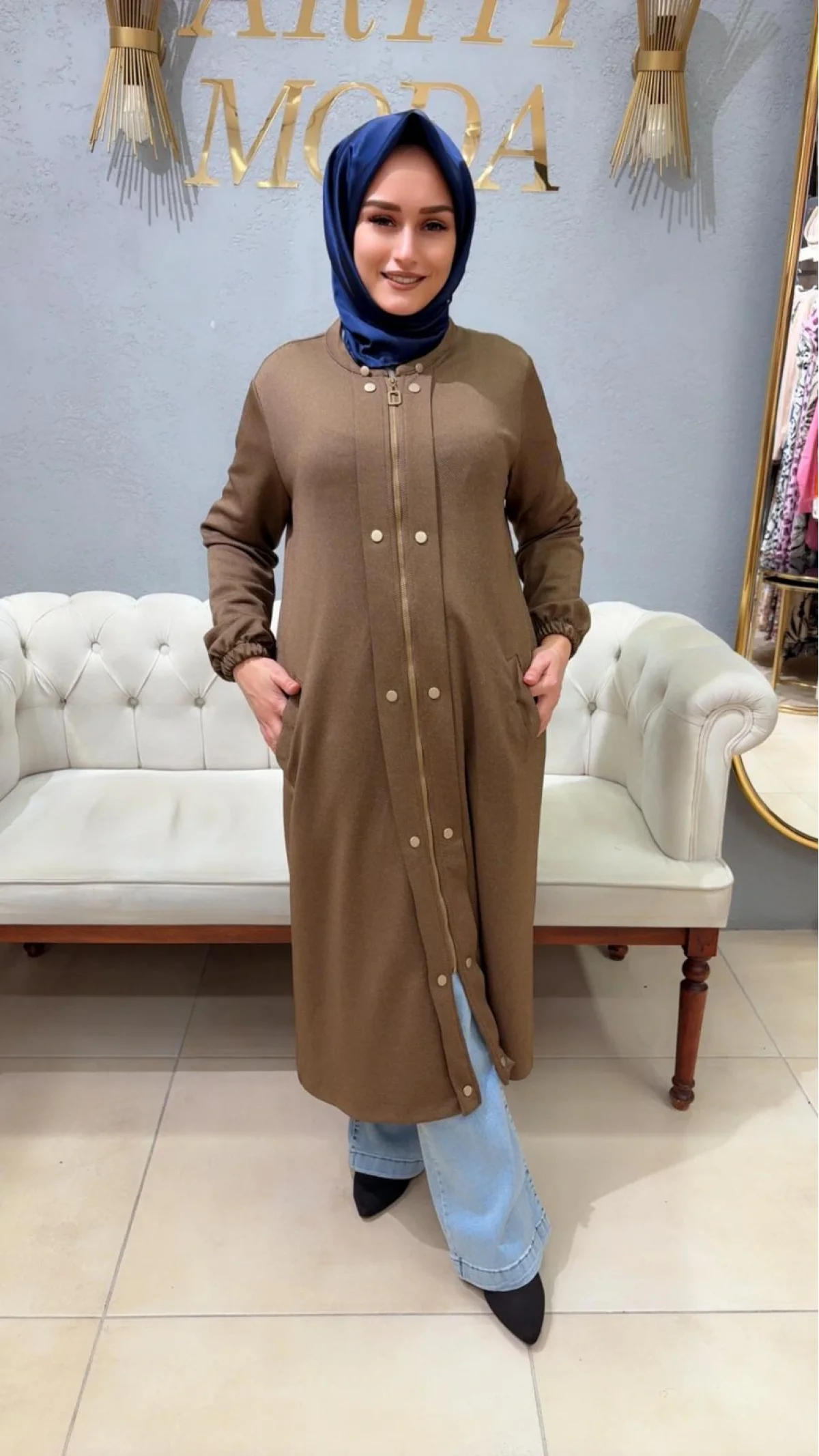 Otto Klasik Astarlı Trenckot Koyu Bej